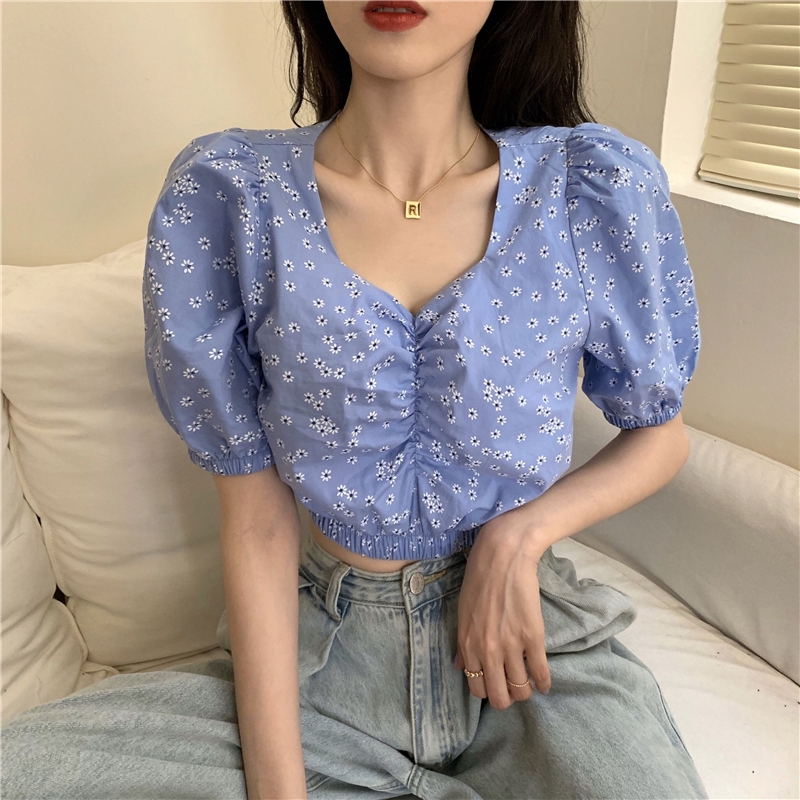 Kemeja Wanita Lengan Pendek Model Square Neck Longgar Sumber : shopee.co.id
